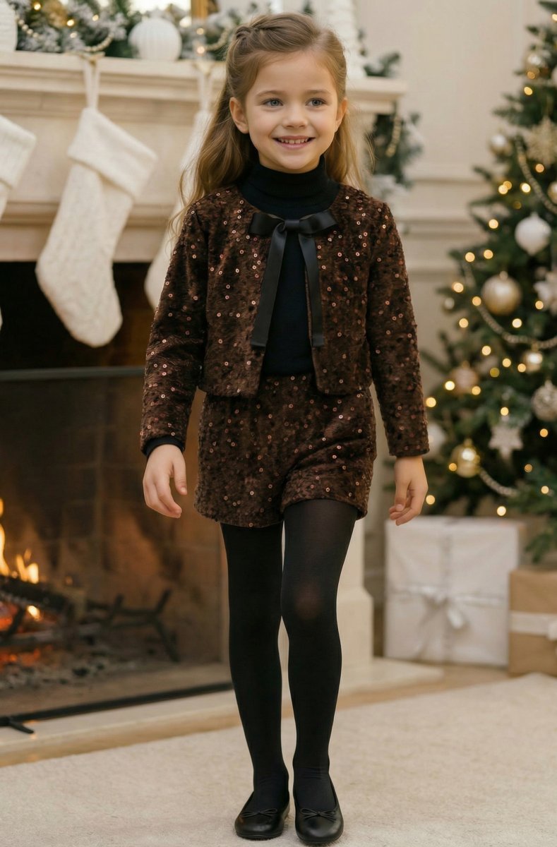 Girls velvet set adorned with sequins, perfect for the holiday season.