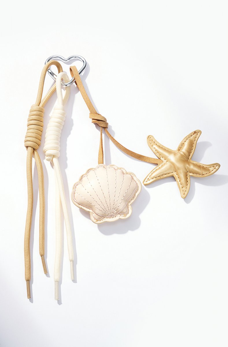Ursöt lite bag-charm som är så fin att hänga på väskan - med en somrig snäcka och sjöstjärna.