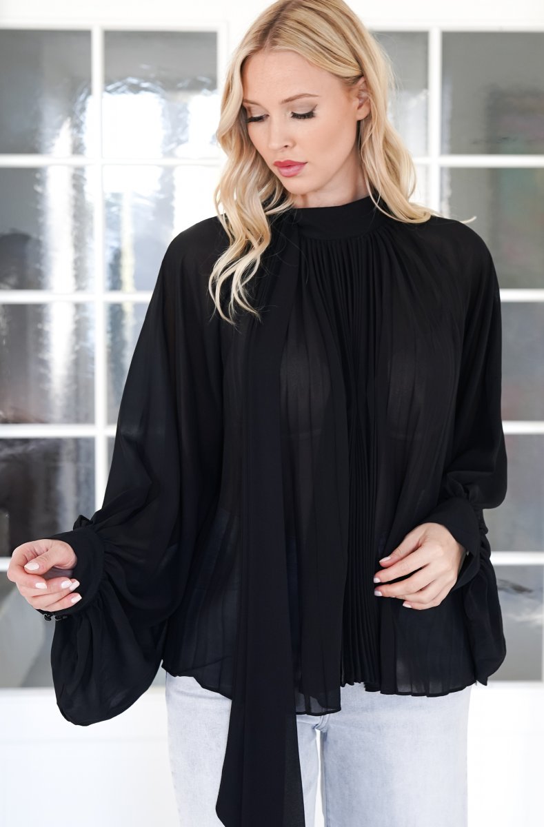 Vacker plisserad blus med knyt framtill. Superhärlig modell som är onesize och passar upp till XL
