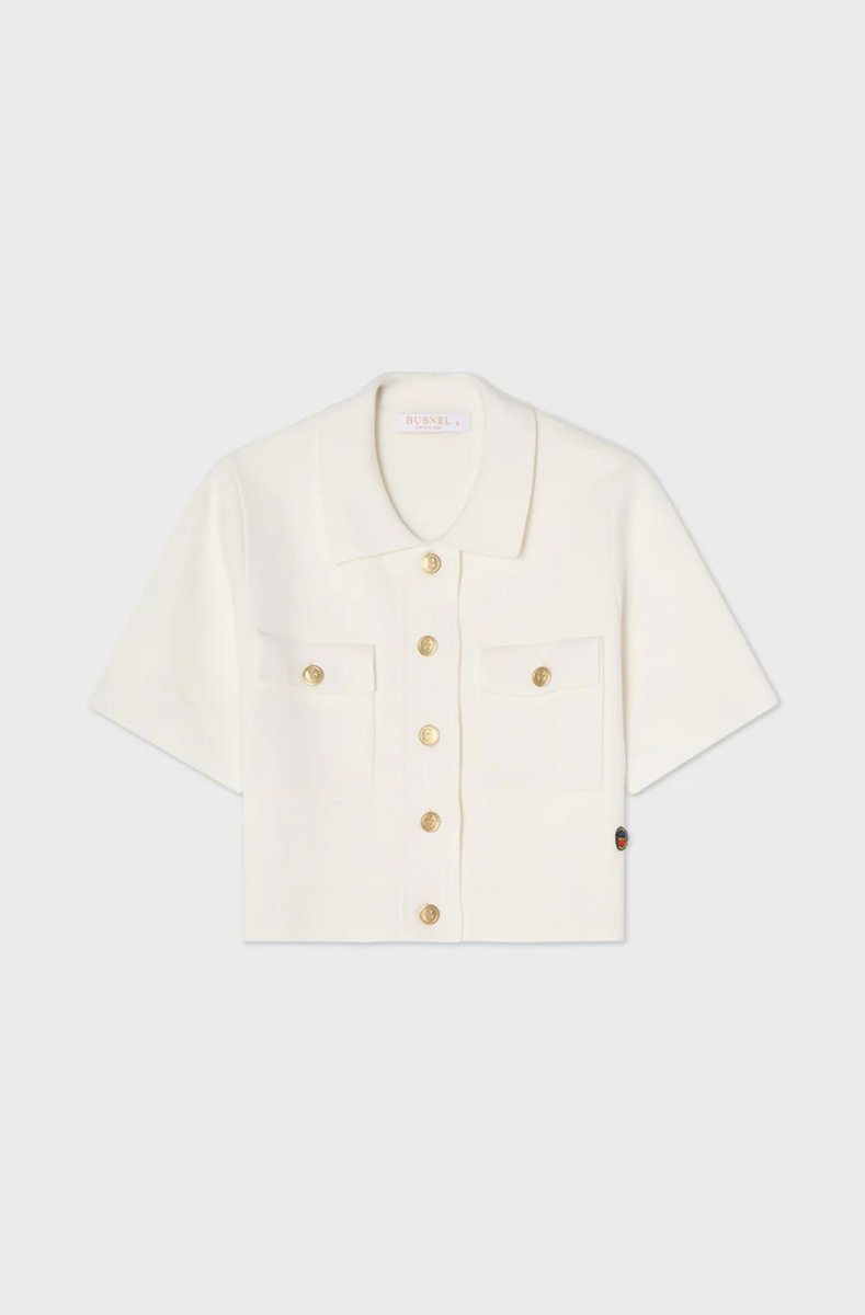 Valery Jacket is a short, cropped top detailed with five golden B-buttons at front and two pockets with one golden B-button. It has a classic collar and short sleeves. Team up with a pair of high waisted pants or skirt.