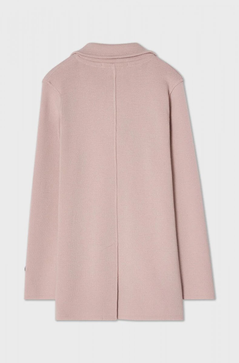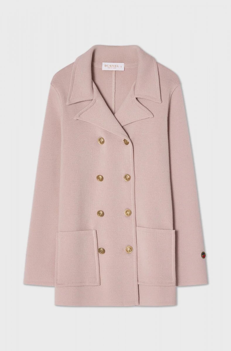 Victoria knitted wool jacket is one of our most iconic pieces. This double-breasted jacket is made in France from high-quality wool. Designed with a slim, feminine silhouette that falls just over the hips, it features two front patch pockets and a double-breasted closure with gold buttons. Versatile by nature, this jacket can be worn indoors as a blazer or outdoors as a lightweight outer layer. Style it with a belt to create a feminine power look.