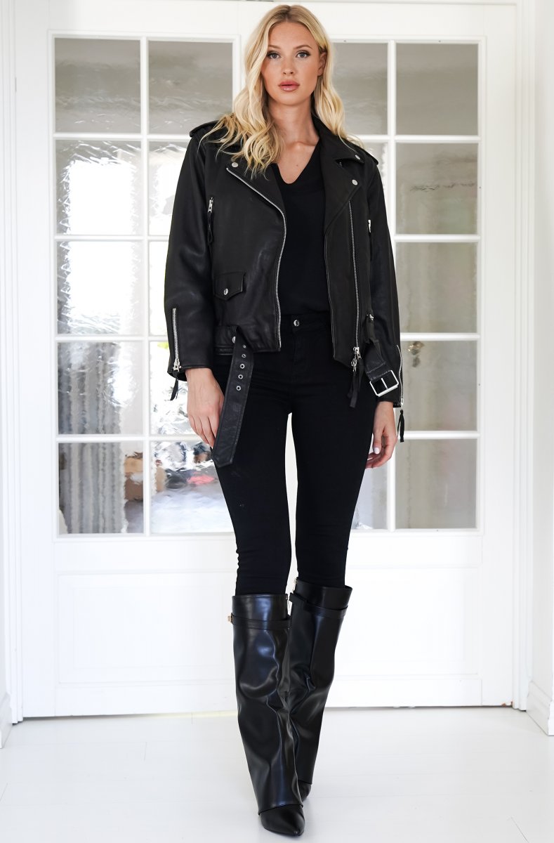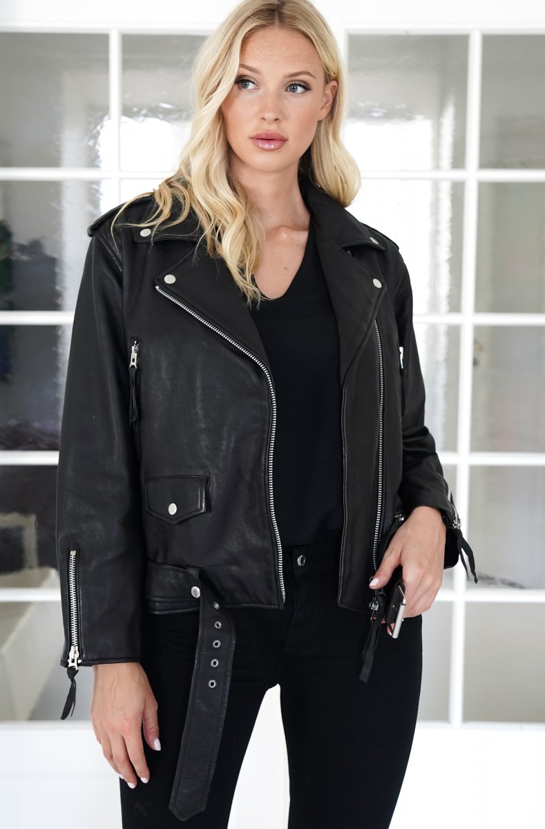 Leah is a tribute to the original biker jacket made from veg tanned naked lamb leather for a traditional worn-in finish that’s unique to each jacket. Over size medium long biker with belt, belt lops, black satin lining, ykk zippers and our signature metal hardware - wear it with anything , anytime, anywhere.
