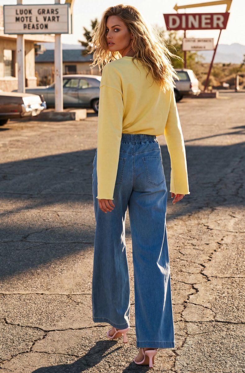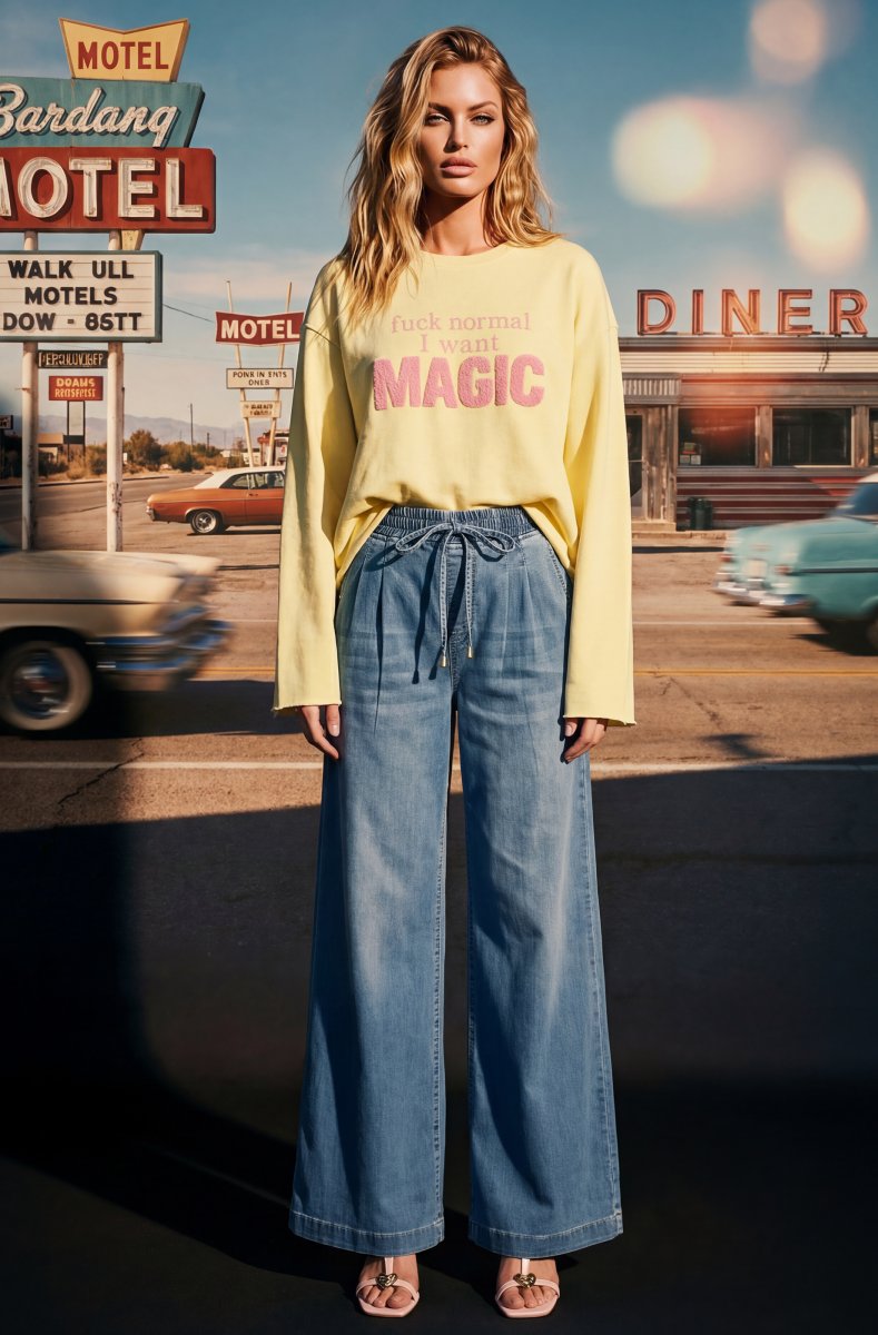 Mjuka supersköna jeans med dragsko i midjan - perfekta i vår och sommar - så härlig vidd i dessa.
