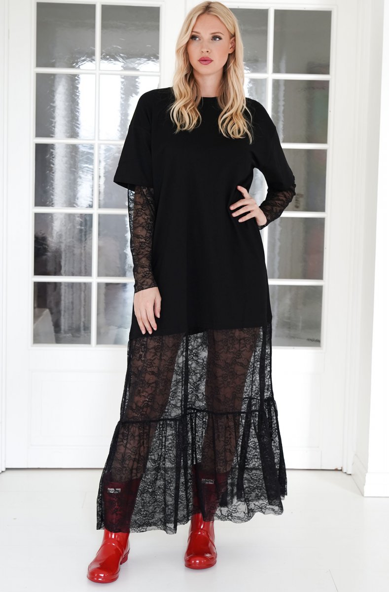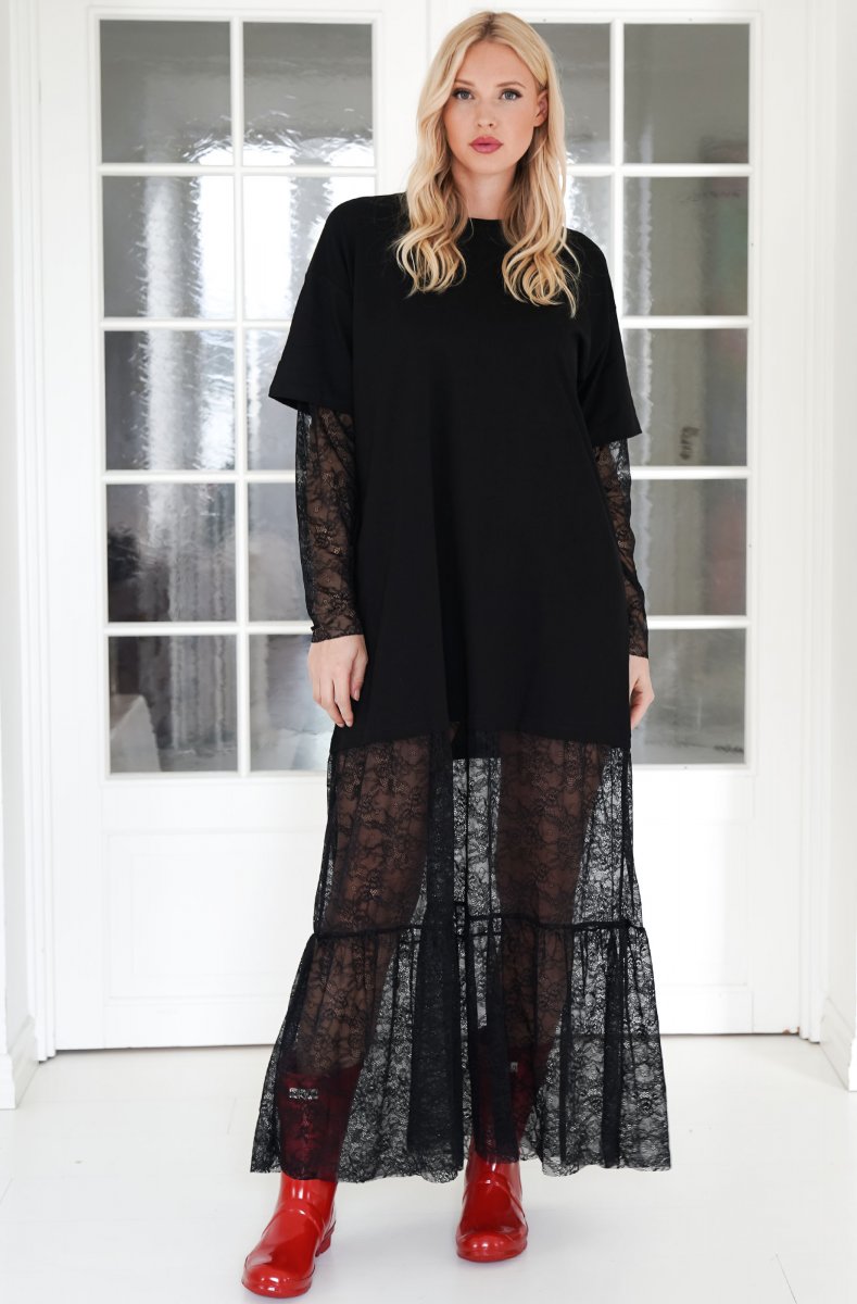 Ljuvlig oversize t-shirt klänning med spets nertill. Otroligt fin på och passar perfekt med ett par boots eller sneakers till vardags