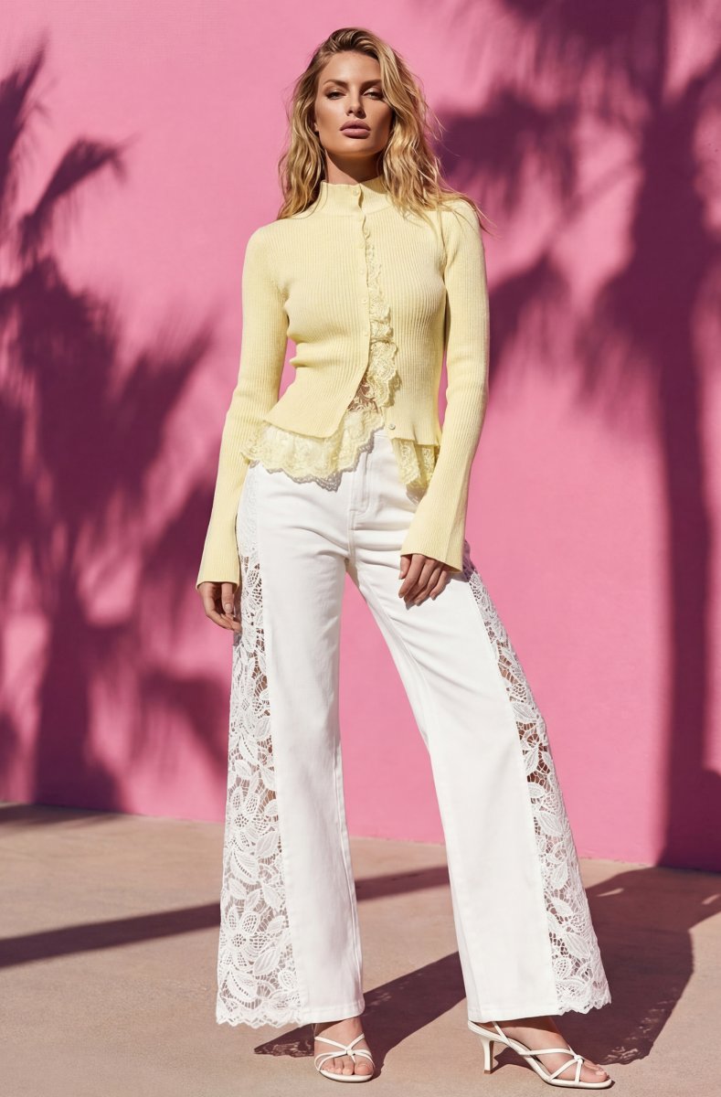 Mixed Brands - Cardigan with Lace U20601 - Yellow