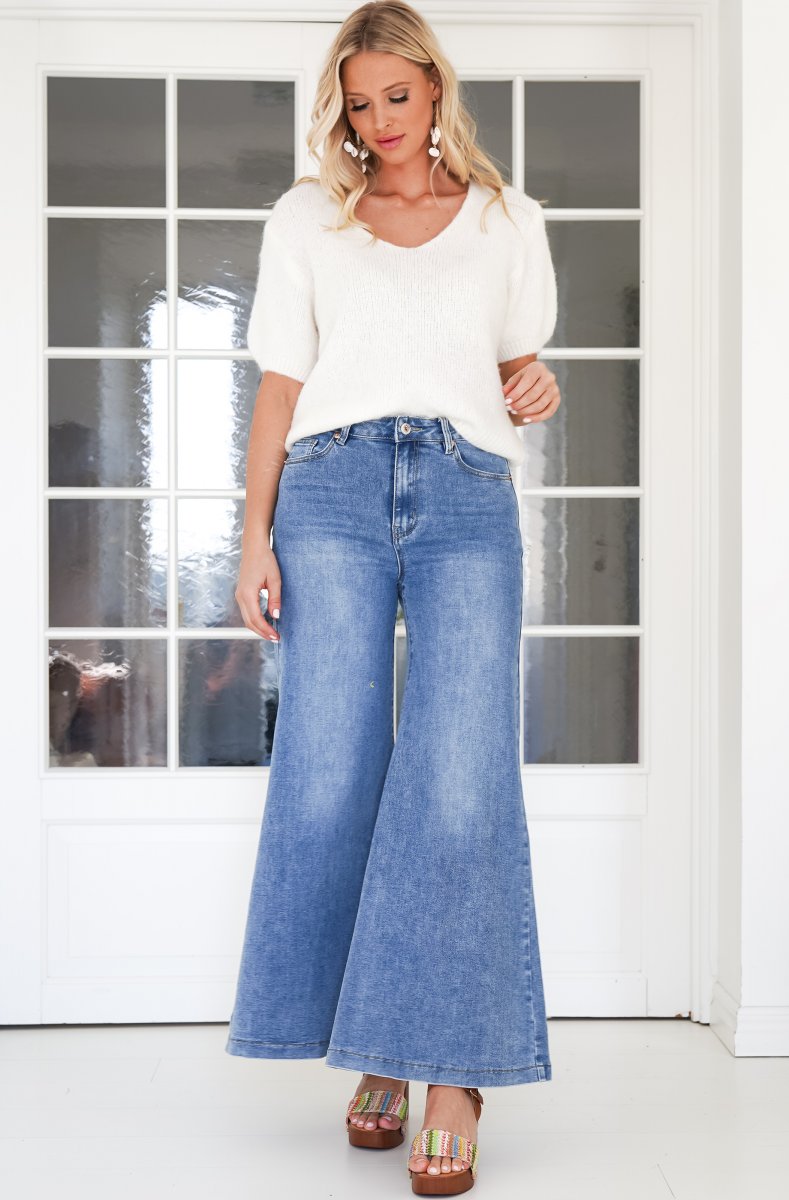 Perfekta sommarstickade tröjan. Så fint v-ringad och med kort ärm