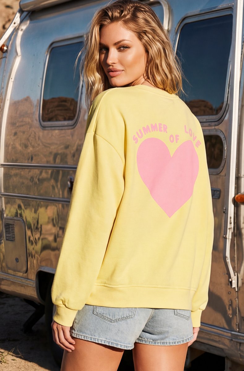 Helt underbar tröja med Summer of Love och stort hjärta på ryggen - samma fina hjärta i mindre storlek fram på bröstet. Onesize och generös - passar upp till XL