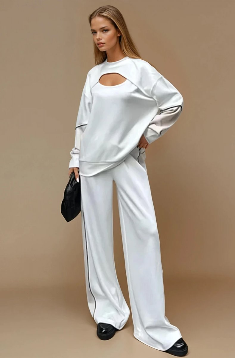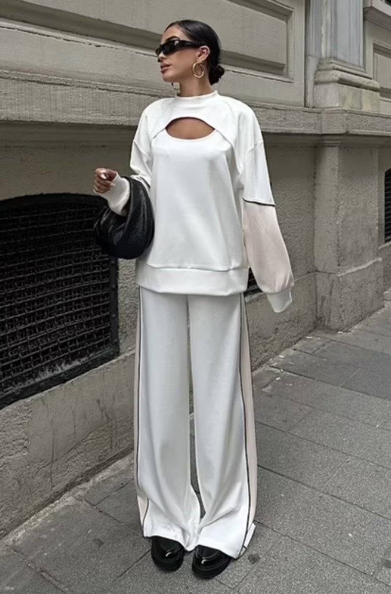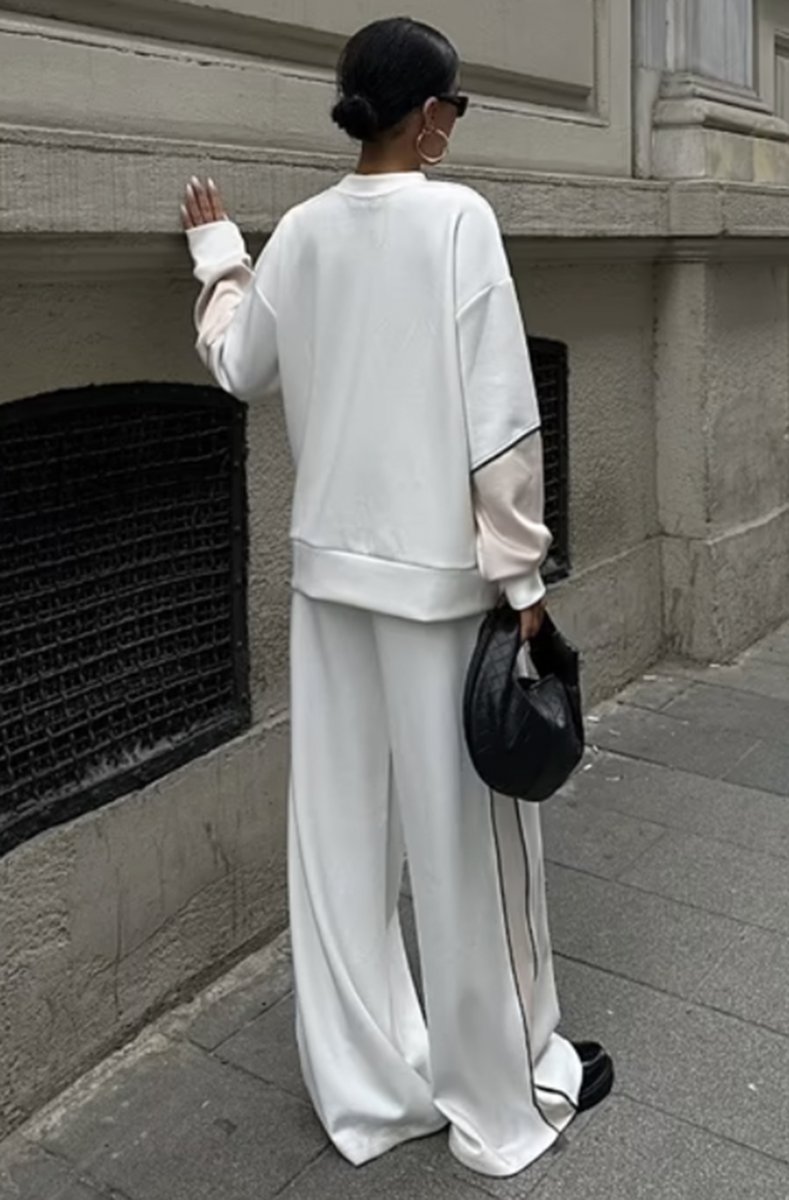Så otroligt fint sweat-set med byxa med revärer och tröra med så fin liten öppning fram. Det här är så fantastiskt fint på och så skönt att gå i