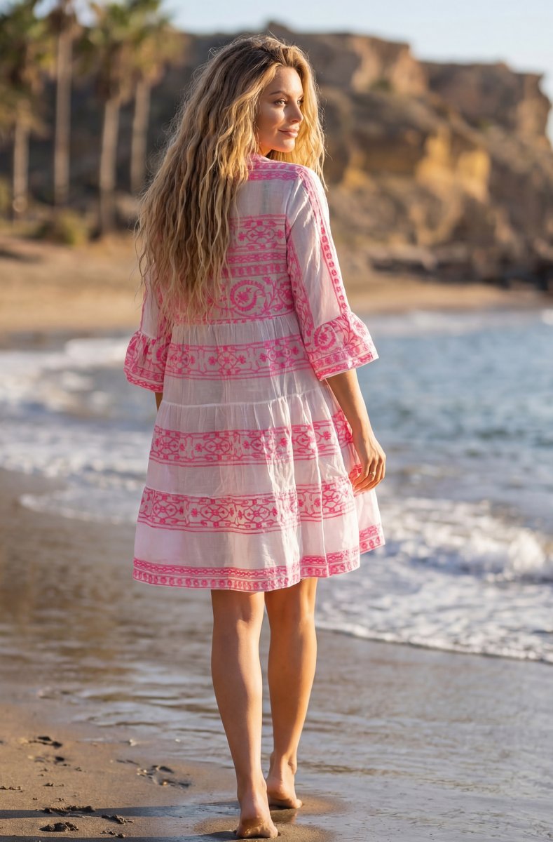 Superhärlig bomullsklänning i ledig modell och i så fint rosa print.