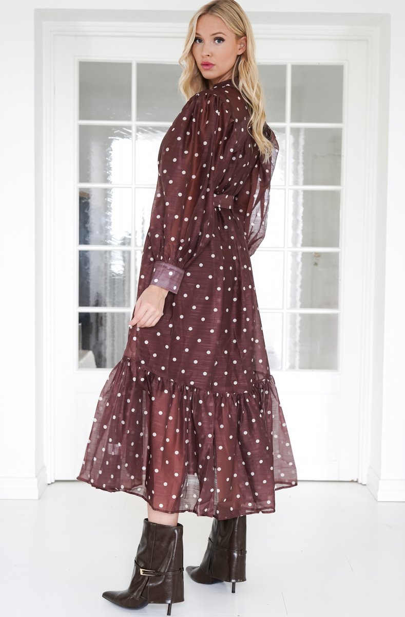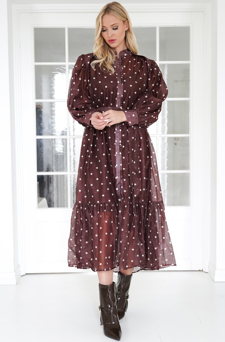 Underbar chokladfärgad klänning med vita prickar - höstens hetaste två trender - prickigt och choklad