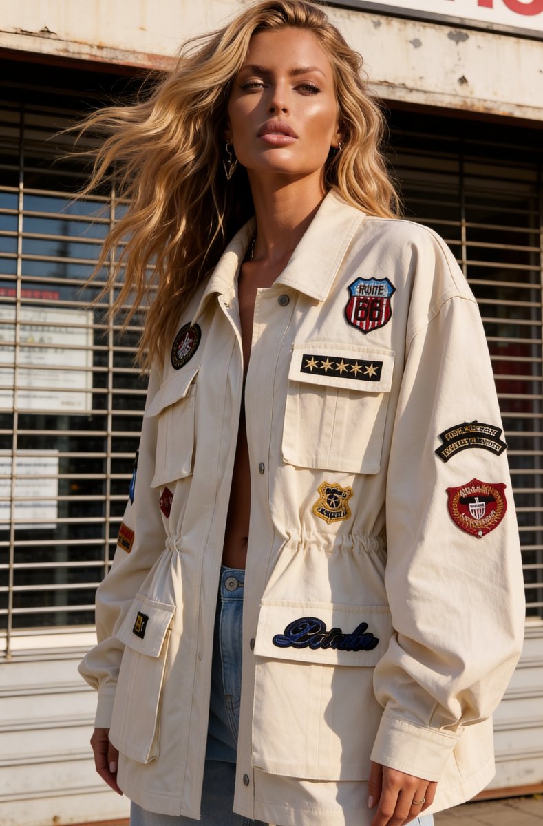 This jacket is something really special with all the nice patches and pockets. I love this relaxed model which is one size and fits up to L/XL.
