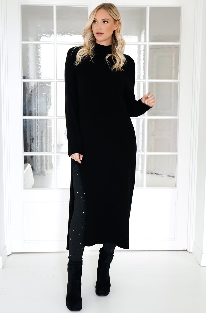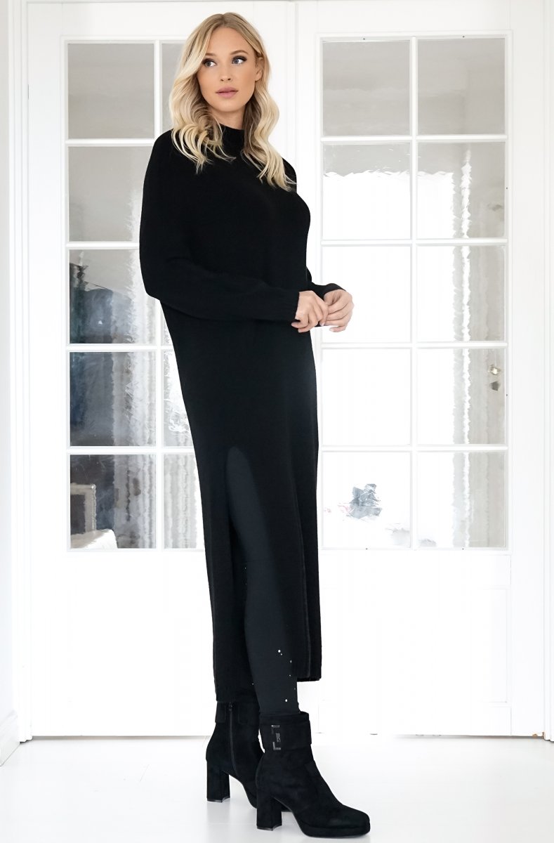 Superhärlig lång finstickad klänning med hög slits på ena sidan.