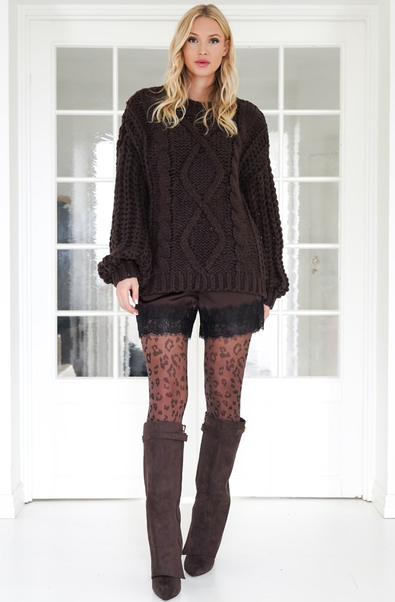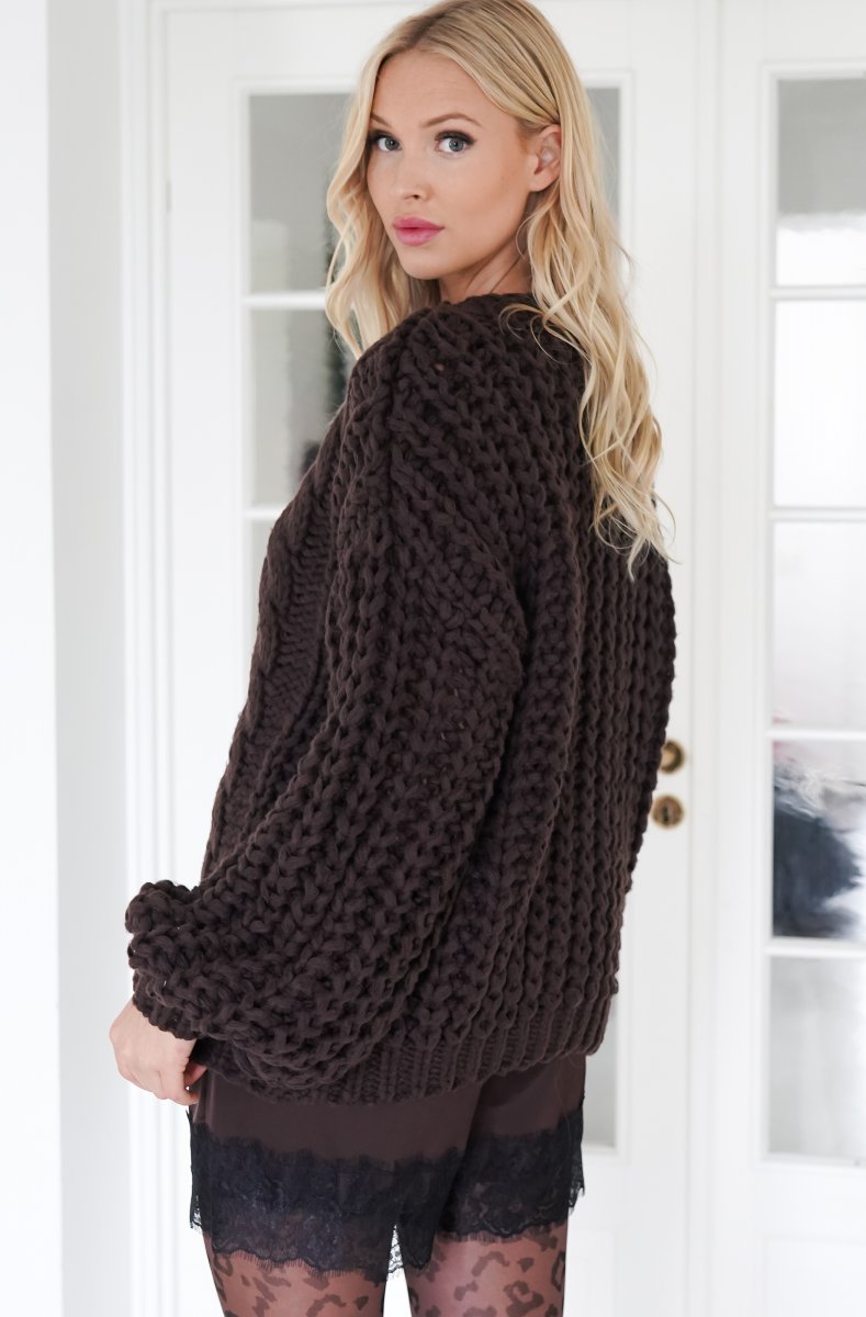 Underbar stickad tröja i höstens hetaste chokladfärg. Handstickad och heelt fantastisk!