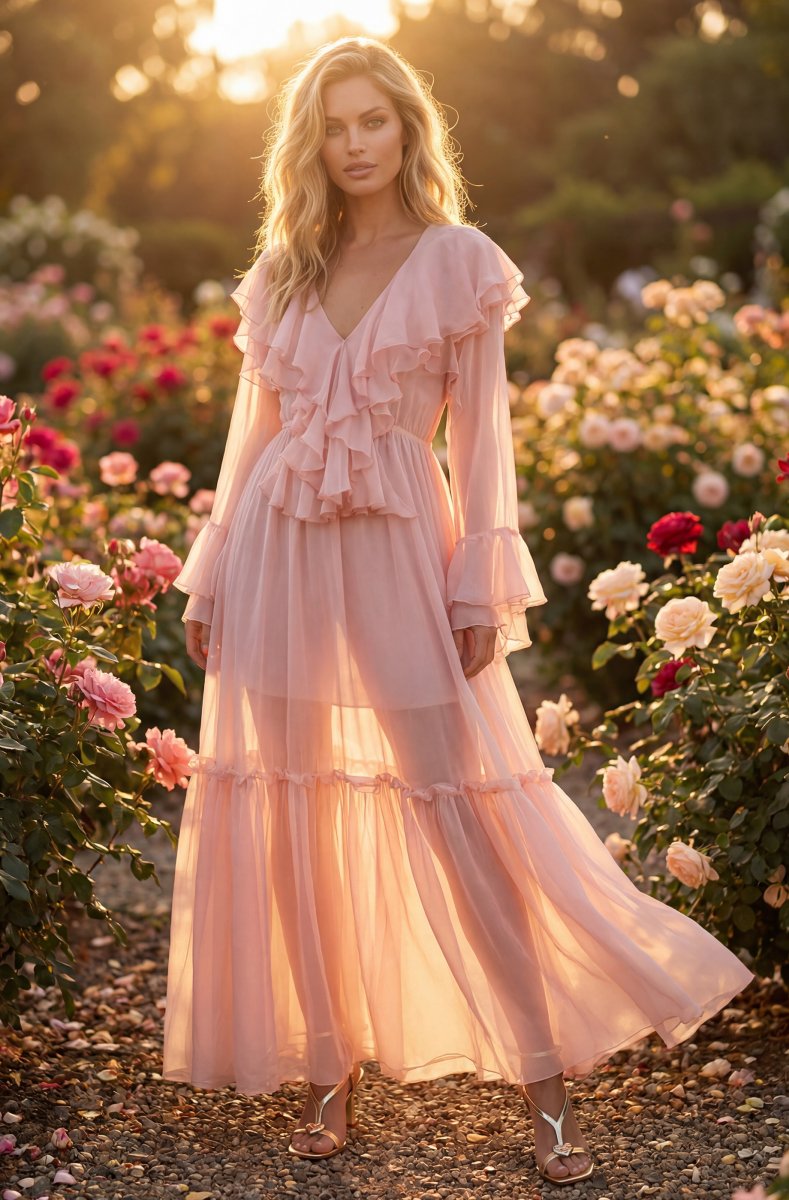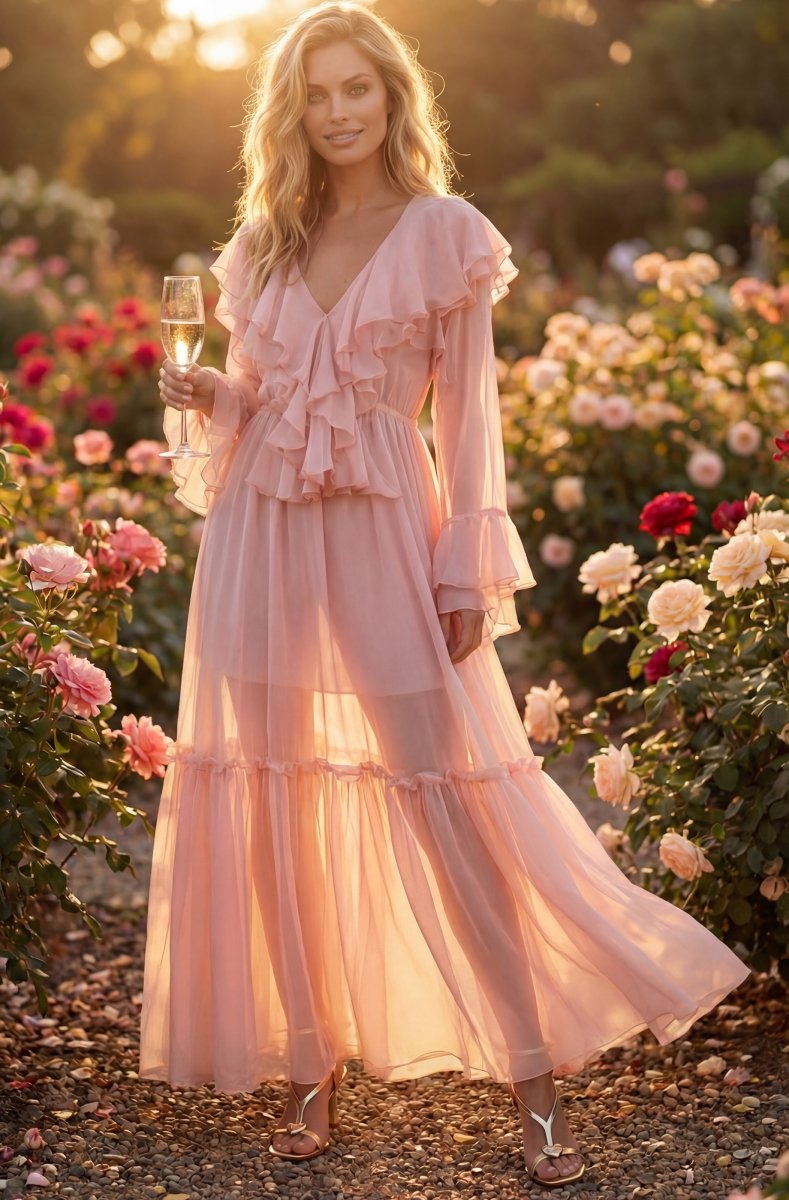 An amazing maxi dress with pretty ruffles and the perfect v-neck