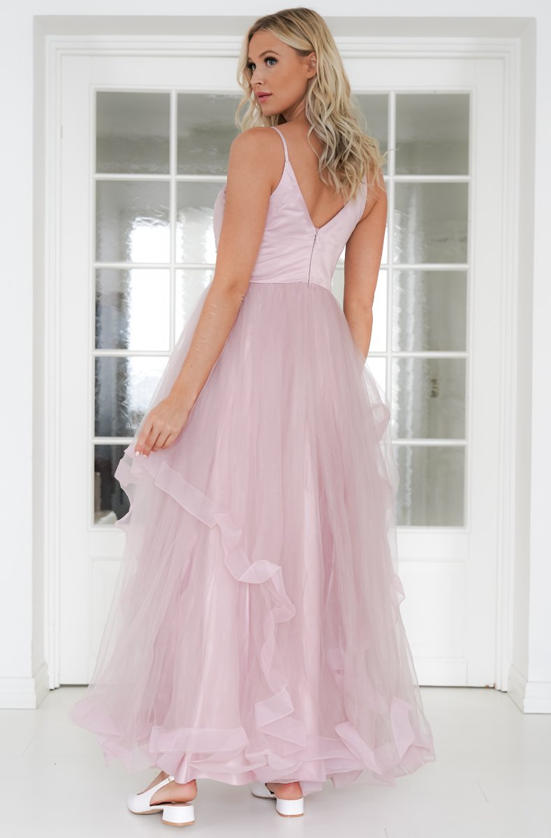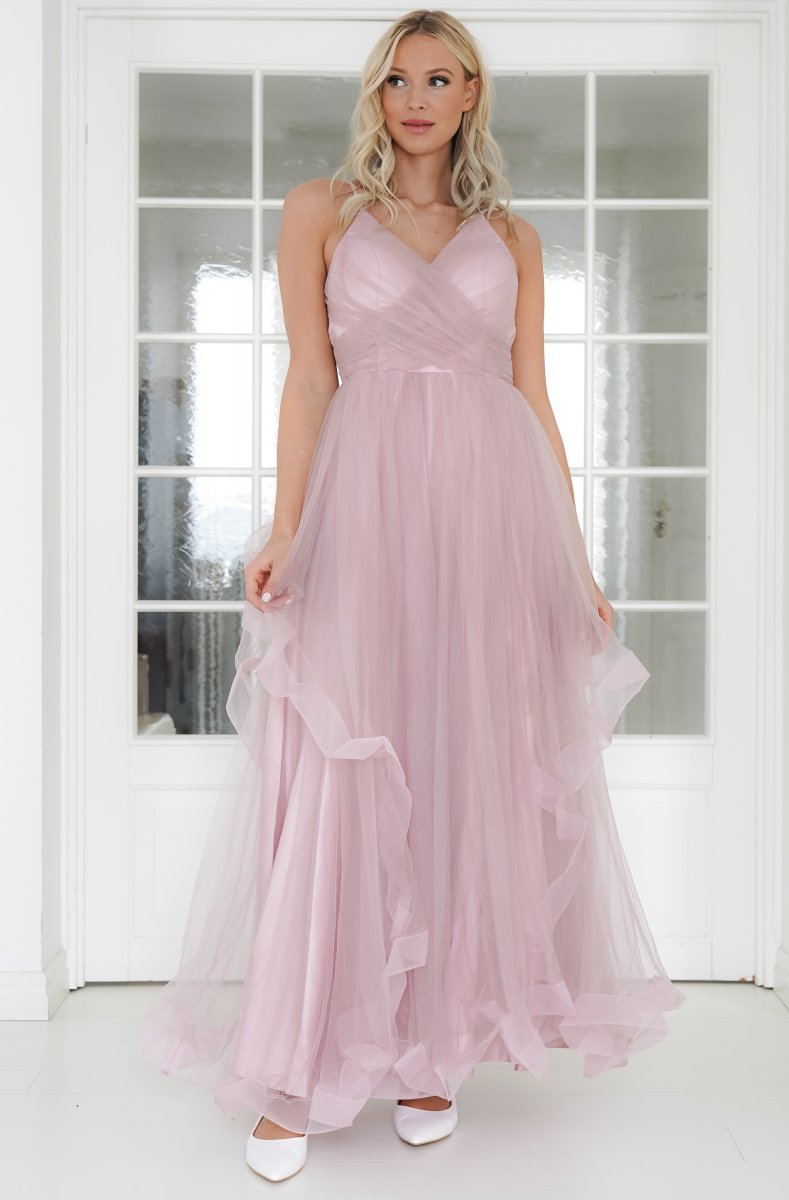 Vacker tyllklänning med smala axelband och fantastisk tyll. Den perfekta klänningen till ett bröllop, en sommarfest eller en bal! Åt det mindre i storlek - vår Linn har L och har normalt S