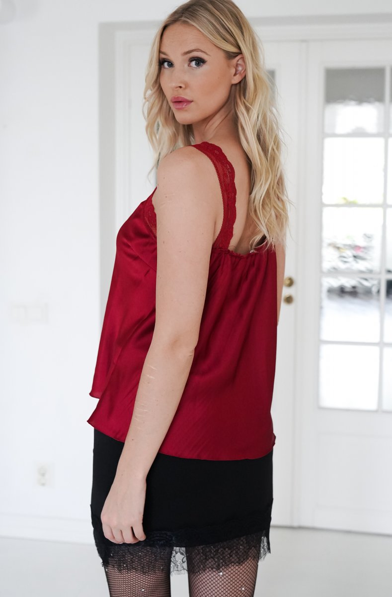 Snygg kort kjol med vacker spetskant. Fin både till blusar och stickade tröjor i höst/vinter