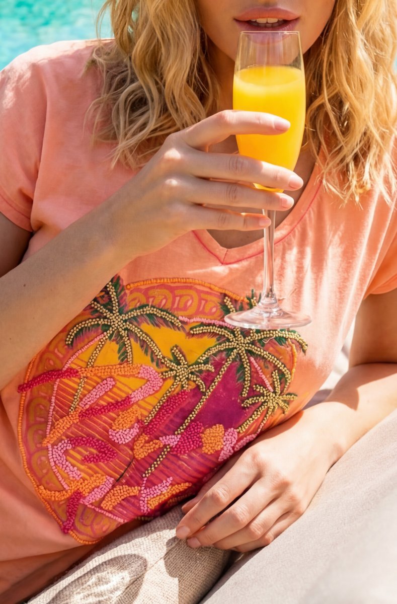 Så vackert arbetad t-shirt med palmer på, helt i bomull - onesize och den passar upp till XL.