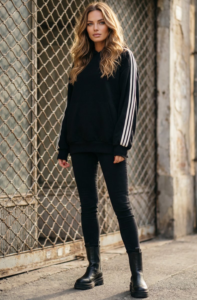 Sportiga ränder på ärmen på denna snygga hoodie! Casual snyggt och den är onesize och passar upp till L