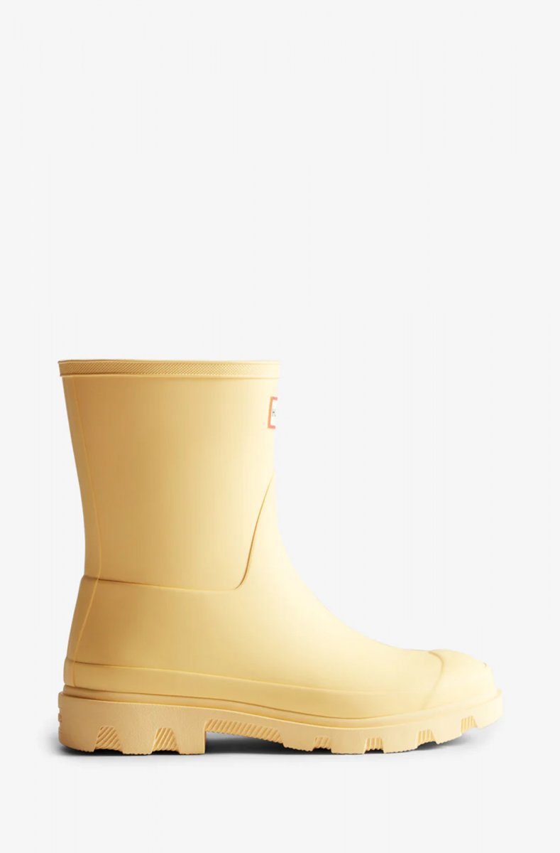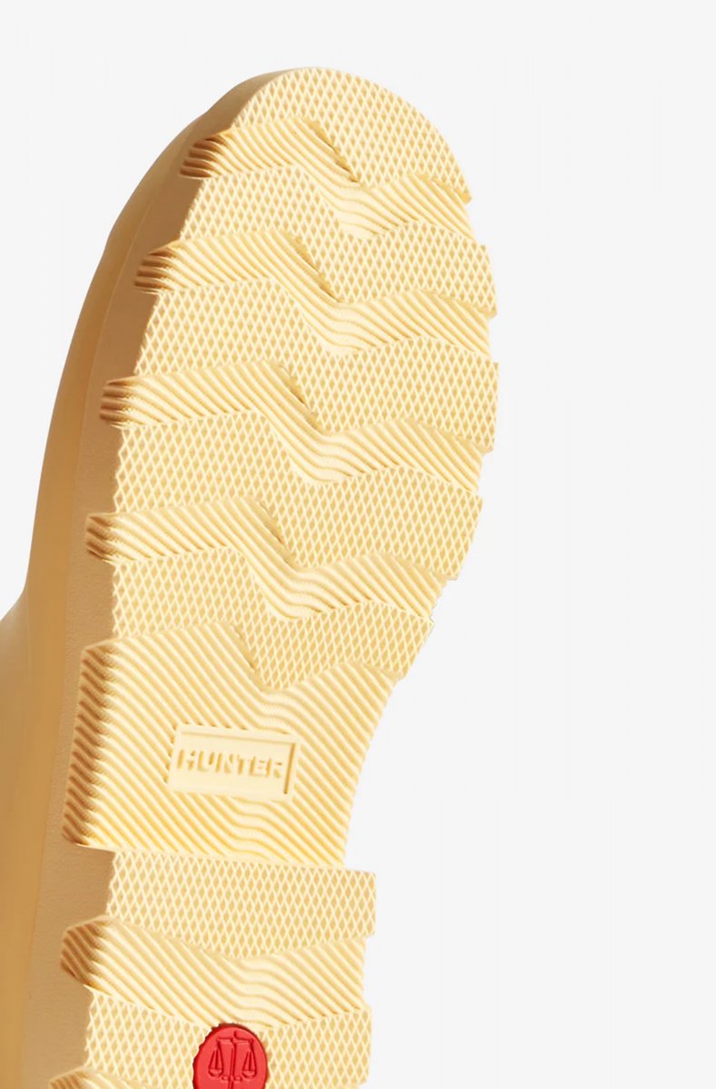 Introducing the newest addition to the Hunter family, our fully waterproof Unisex Downpour Short Boot. With a sleek upper design and a lightweight moulded outsole, the unique tread has taken influence from natural shapes found in landscapes. Handcrafted and finished with a heritage topbind, this unisex butter yellow riding boot has been engineered to have a more modern and voluminous calf fit.