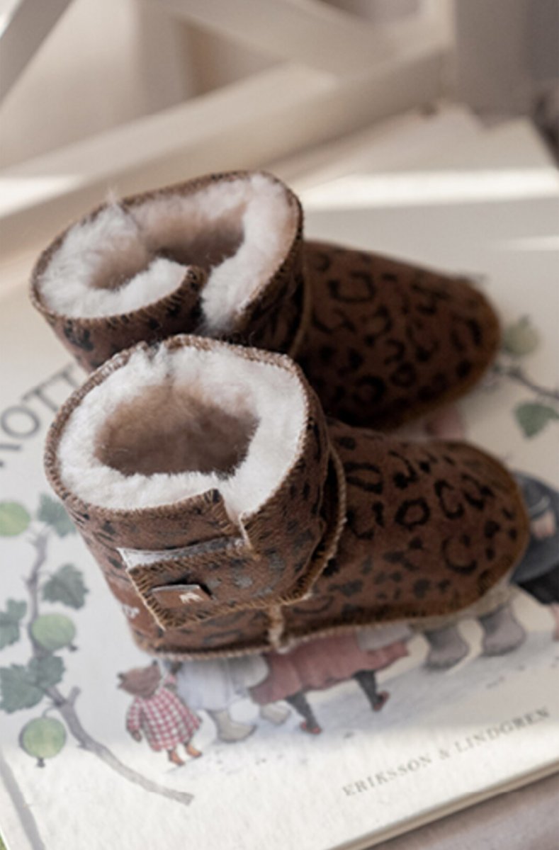 Shepherd Borås är ett par sköna och varma babytofflor i 100% fårskinn. Tofflorna är i ankelhög modell med reglerbar kardborreknäppning vid sidorna vilket gör att den sitter ordentligt på plats och är lätt att ta på och av. Mjuk sula i mocka.