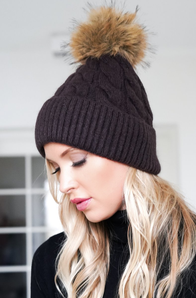 Så fin mössa med bred uppvikt kant och fint flätstickat - och en fantastisk tofs!