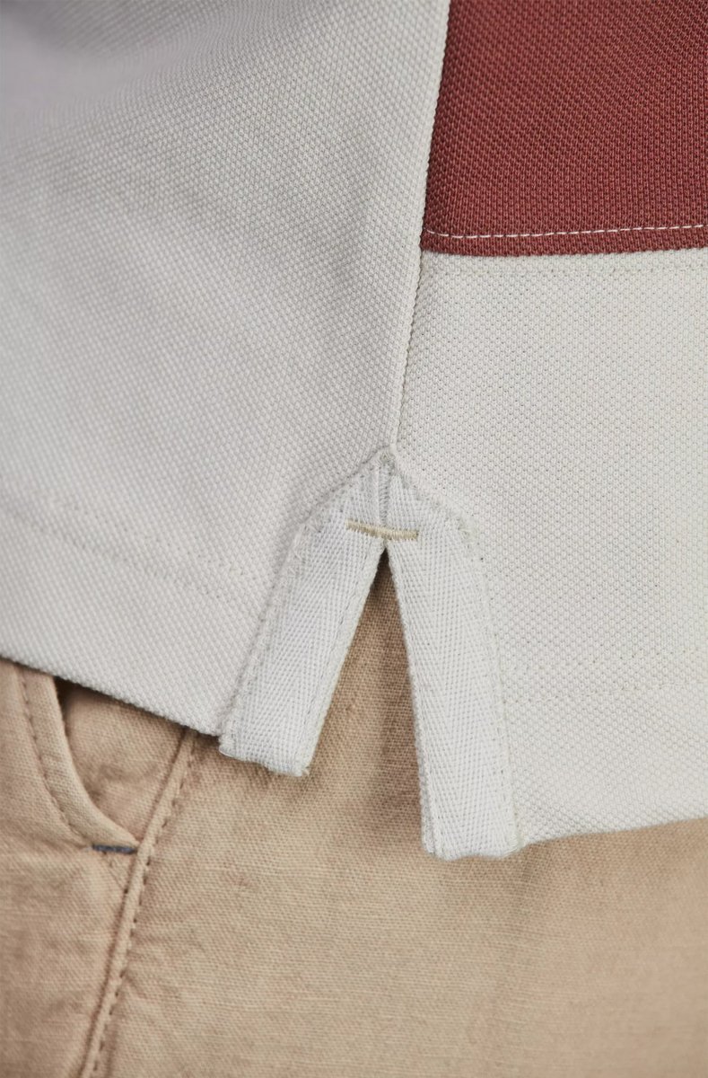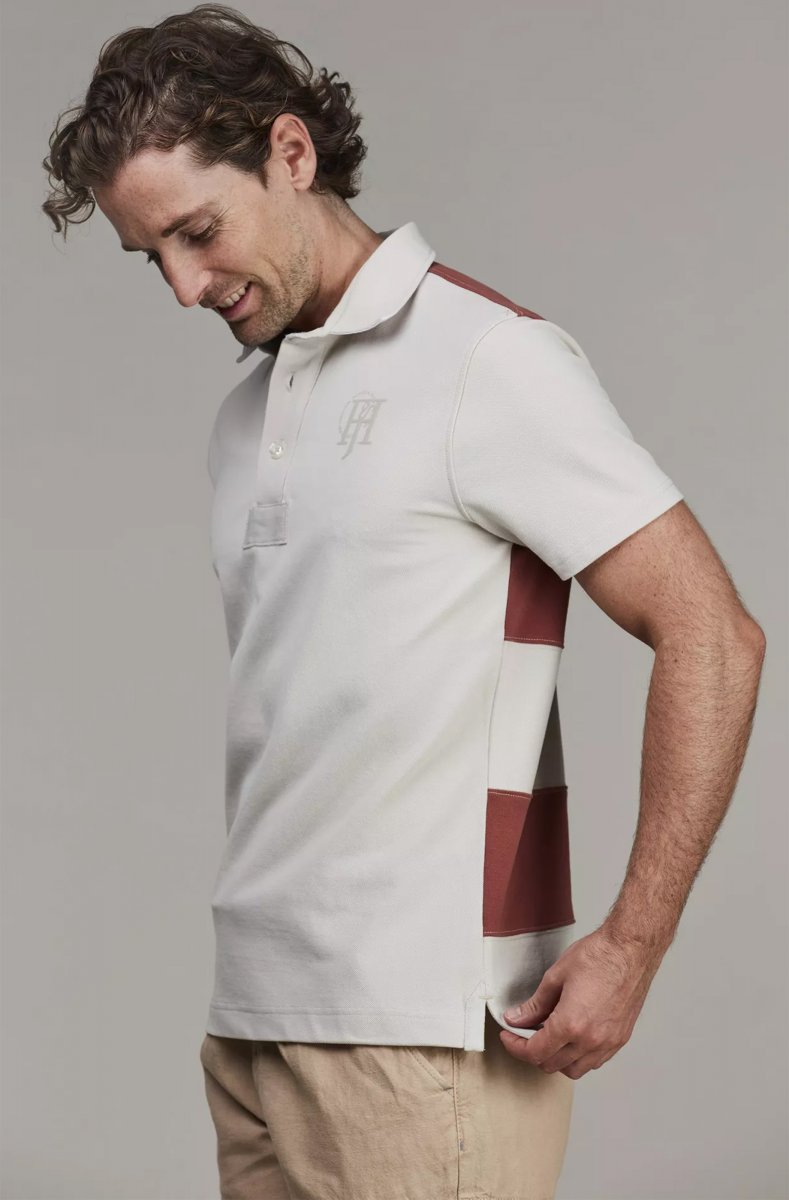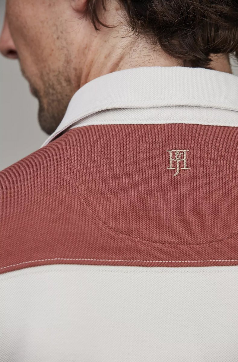 Denna ikoniska kortärmade piké är tillverkad i plaggtvättad, mjuk bomull och är full av exklusiva detaljer som broderier under kragen och på bröstet. Framsidan har en stilren, enfärgad design medan ryggen överraskar med blockrandigt mönster. Finns i tre snygga färgkombinationer – perfekt för den som söker något unikt och stilfullt!
