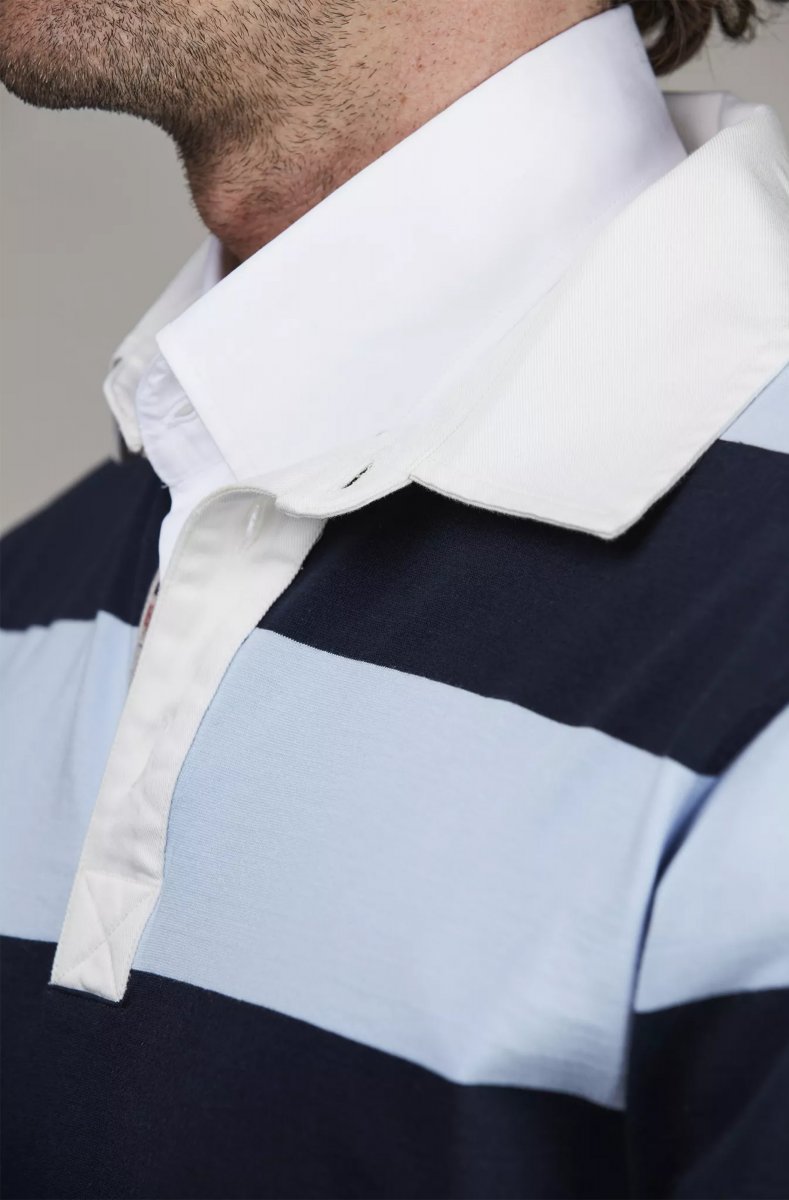 Detta är så mycket rugbytröja man kan komma. Klassisk tvärrandig i två färger och med creme vit krage. På ryggen finns en snygg batch med året då vi grundades. Ett givet val för den som vill ha en klassisk rugbytröja.