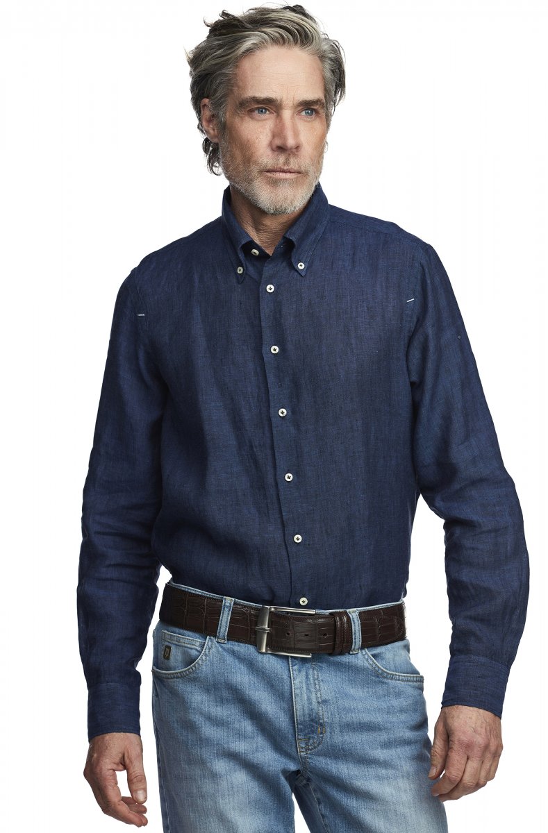Hansen & Jacob - Linen Shirt Button Down - Dark Blue 47