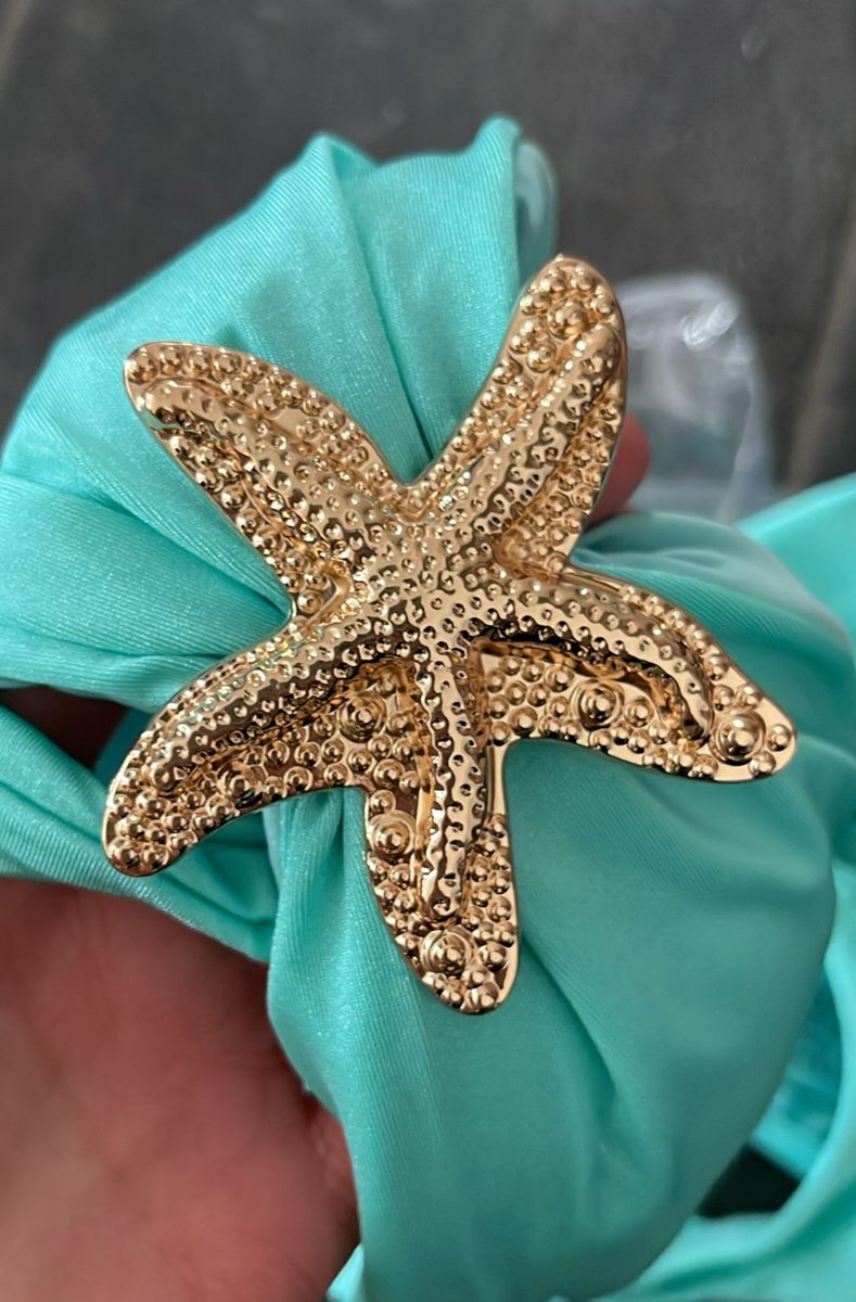 Snygg bikini med otroligt vackra guldiga sjöstjärnor på - och wrap i mesh - perfekt till stranden.