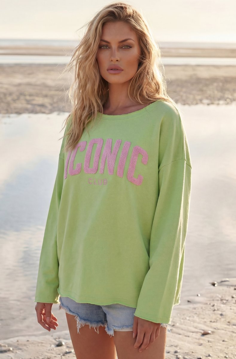 Älskar denna tröjan med Iconic text på. Onesize och passar upp till storlek XL.