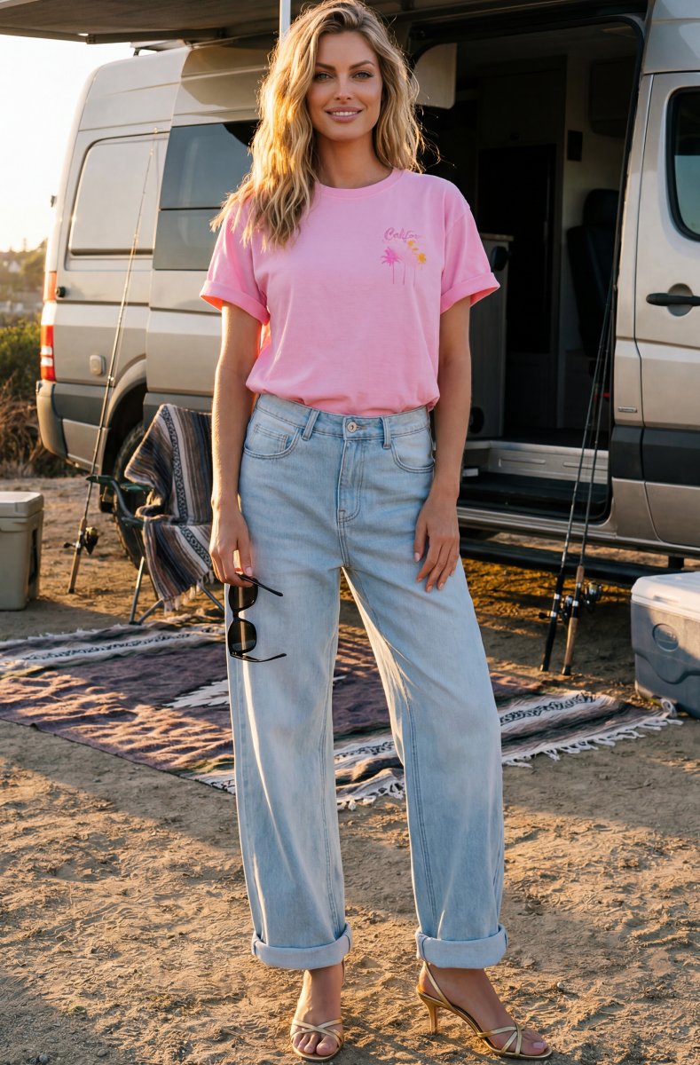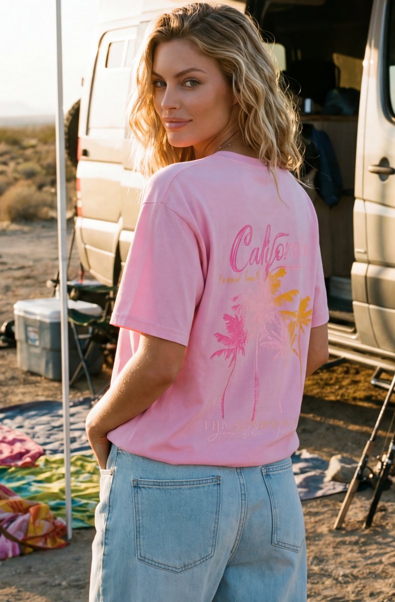 Ursnygg tshirt i 100% bomull med California print. Så snyggt med palmer i rosa och gult både fram och bak