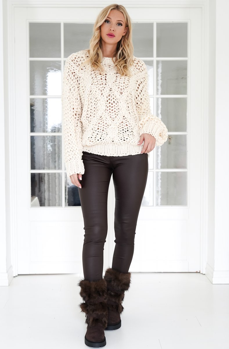 Så fin och mysigt stickad tröja i beige. Snyggt flätstickad