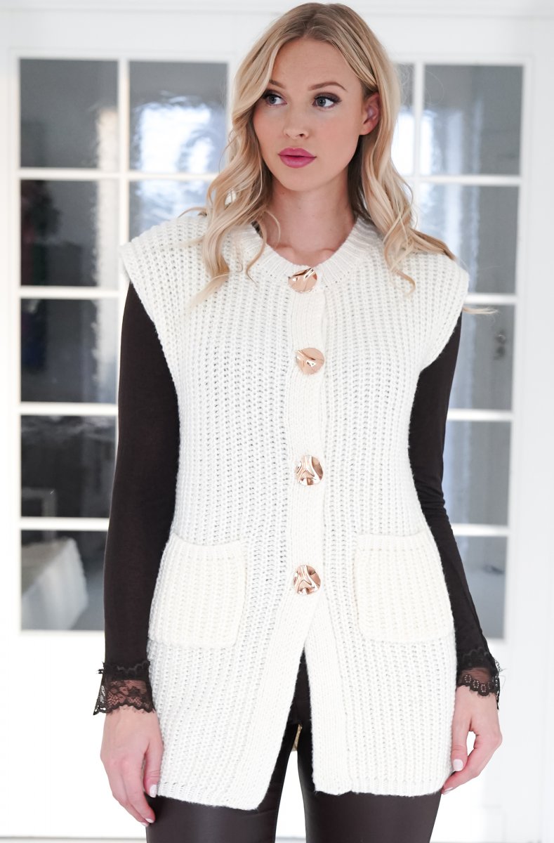 Supersnygg stickad väst med vackra knappar