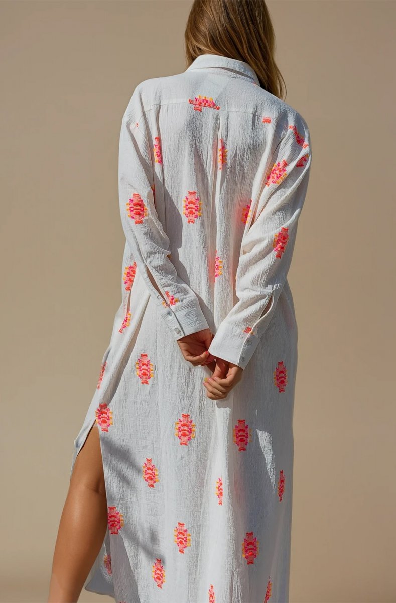 Fantastisk skjortklänning med snygga slitsar vid sidorna och så fint tyg! Ljuvlig i sommar - verkligen den perfekta sköna vardags-klänningen!