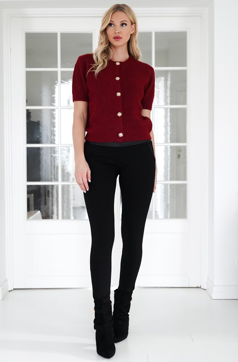 Chic High-Waist Pants ⁄ Leather details with pockets, stretch. MILANO fabric. Great fit.
