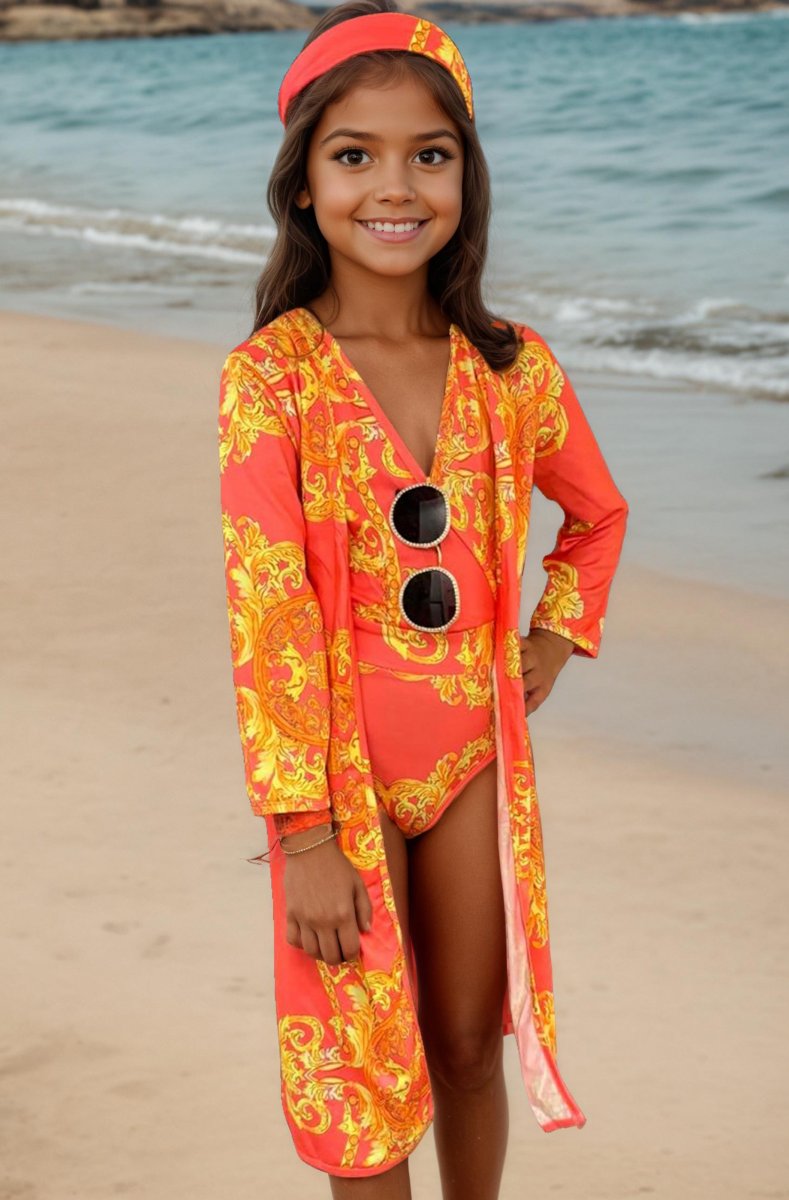 Oemotsåndligt set för barn med baddräkt och tillhörande kimono att ha över. SÅ otroligt fint print och setet finns från 4 - 14 år